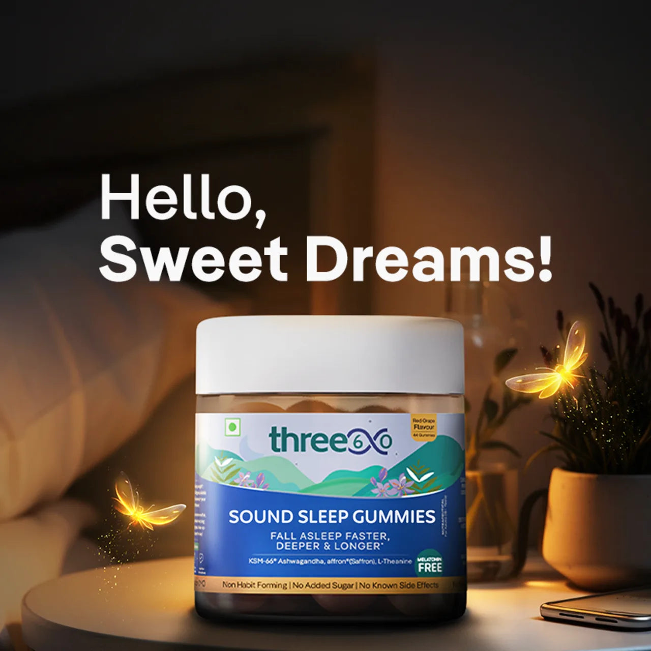 The three60 Sound Sleep range helps you relax and sleep better with specially chosen ingredients that reduce stress and improve your sleep quality. Indulge in yummy sleep gummies and other formats for long & restful sleep. Our range extends beyond the bedroom, offering stress relief solutions for every corner of your life. three60 is dedicated to elevating your well-being and aims to target the root cause of your challenging areas.