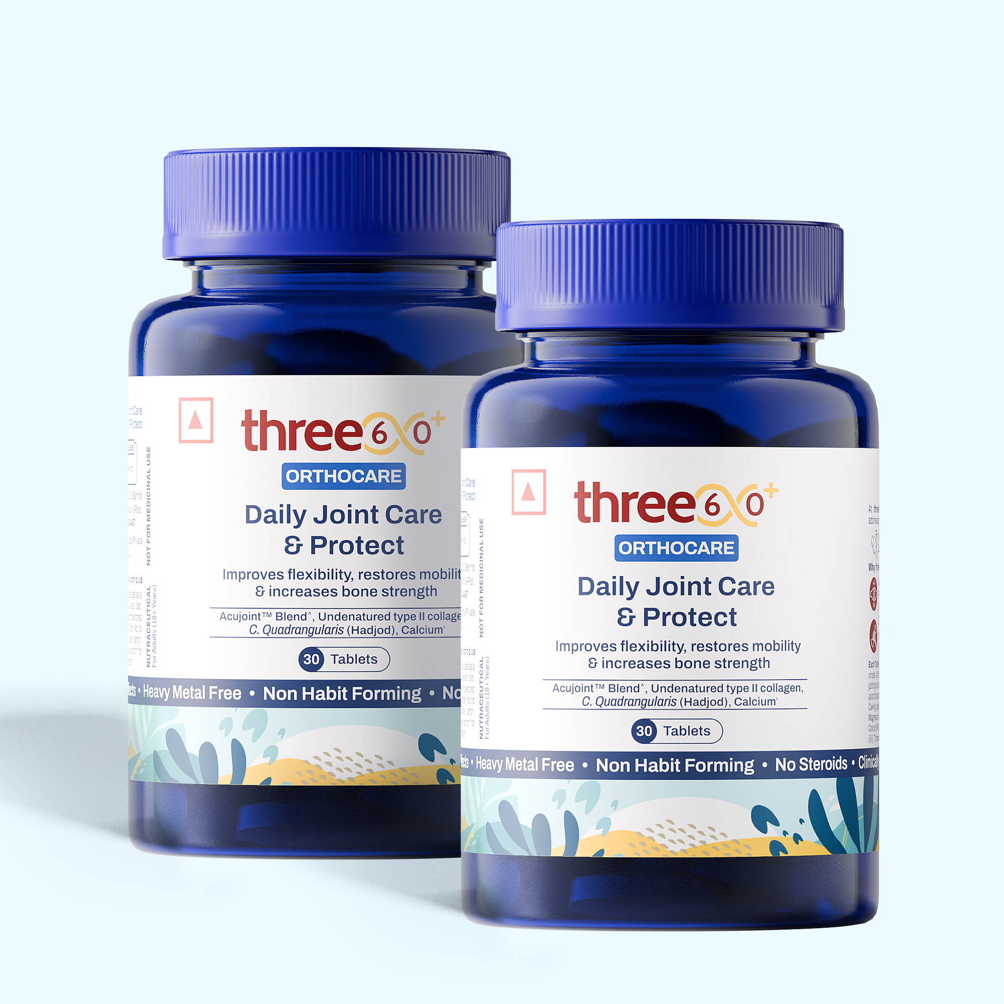 In today’s fast-paced world, maintaining optimal joint health is crucial for an active and fulfilling lifestyle. three60+ Daily Joint Care & Protect tablets are more than just calcium – these are packed with essential nutrients, UC Type II Collagen, Acujoint & Hadjod which make these an all-in-1 joint care supplement. They are designed to support joint function, flexibility, and mobility, making it easy to care for your joints, one day at a time.
