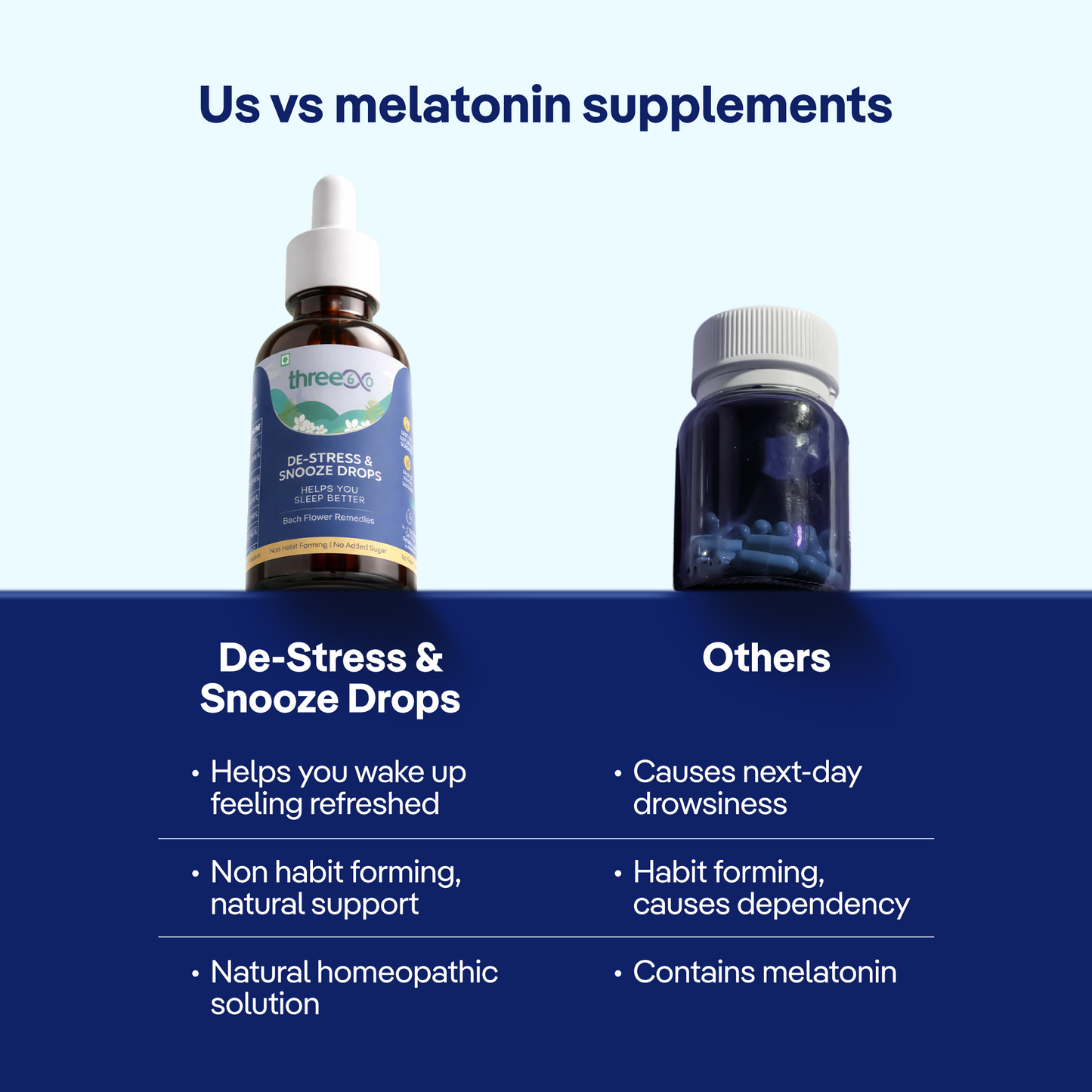 Feel rested, clear, and centered every morning. three60 Snooze Drops use a clinically rooted blend of Bach Flower Remedies to calm night-time stress, reduce mental chatter, and support deeper, more natural sleep - all without melatonin or habit-forming ingredients.