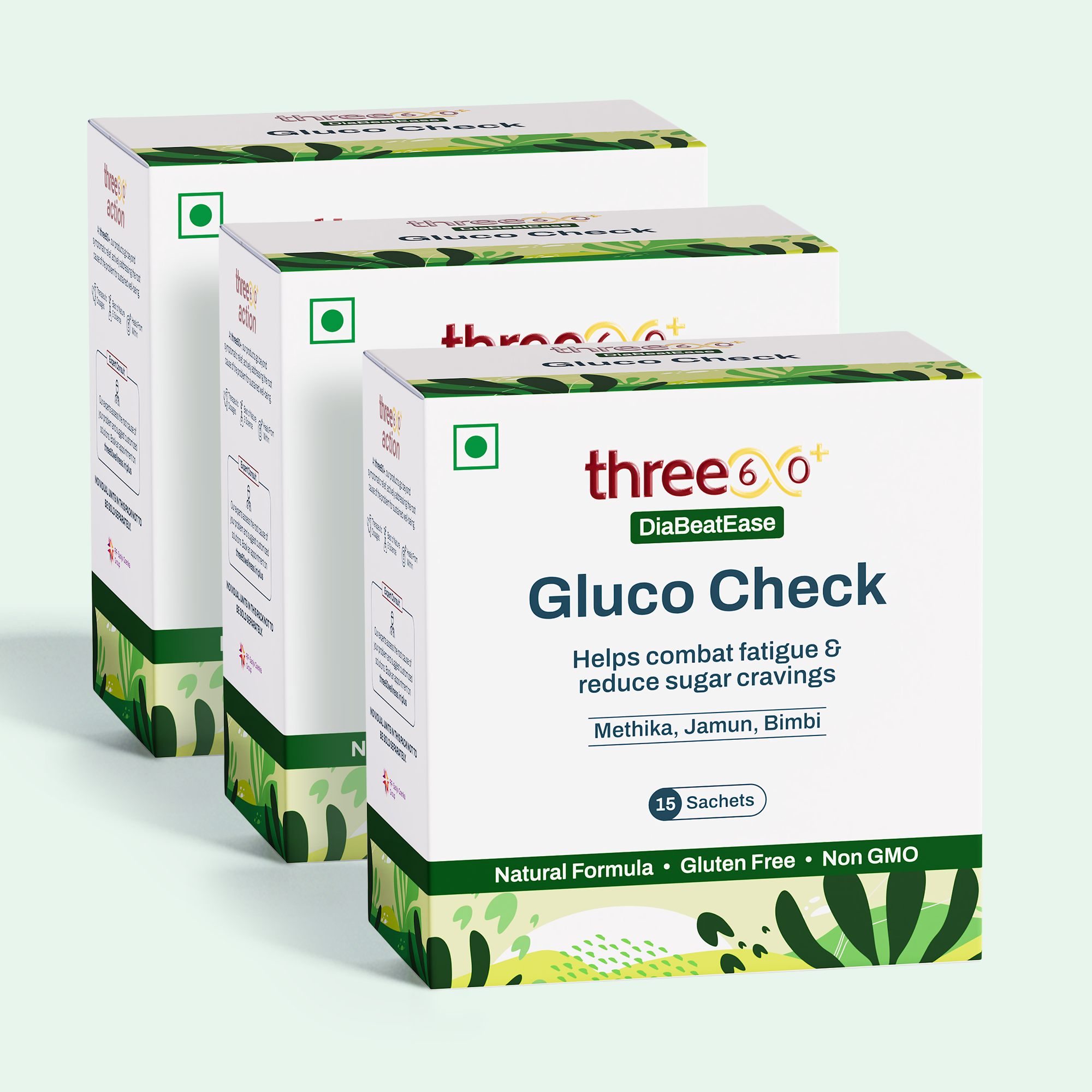 - three60+ Gluco Check Powder helps keep HbA1C levels in check.