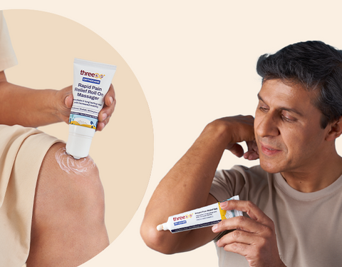 Joint pain affecting your daily tasks like running, moving, or simply sitting? Get immediate relief with three60+ Rapid Pain Relief combo. The gel is residue-free and the roll-on massager contains 5 stainless steel rollerballs for effective relief from pain and stiffness.